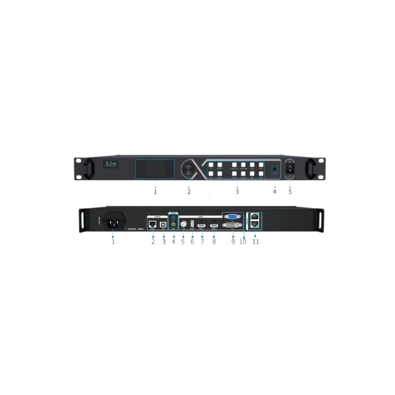 Colorlight X2m là bộ xử lý hình ảnh (video processor) kết hợp bộ điều khiển LED tích hợp, được sản xuất bởi Colorlight – thương hiệu nổi tiếng trong lĩnh vực điều khiển màn hình LED chuyên nghiệp. Thiết bị này giúp chuyển đổi, xử lý và phân phối tín hiệu hình ảnh đến màn hình LED với chất lượng cao, đồng thời hỗ trợ nhiều nguồn tín hiệu khác nhau như HDMI, DVI, DP…